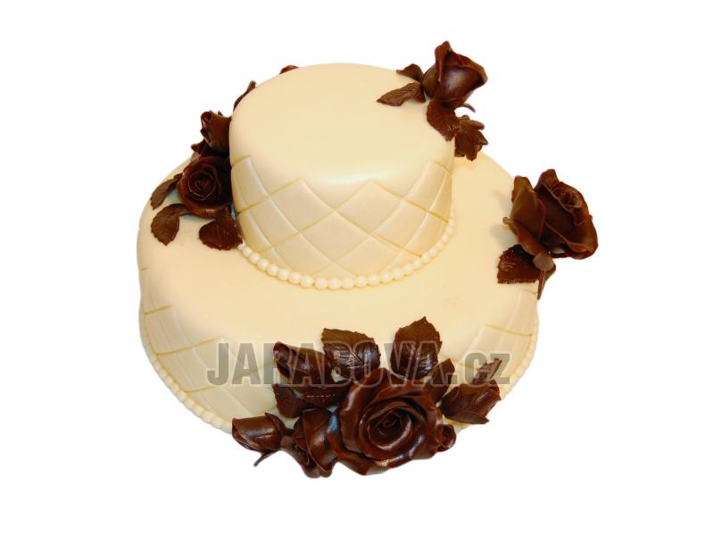 2 patrový dort, potažený marcipánem, marcipánové růže, náplň dle přání.